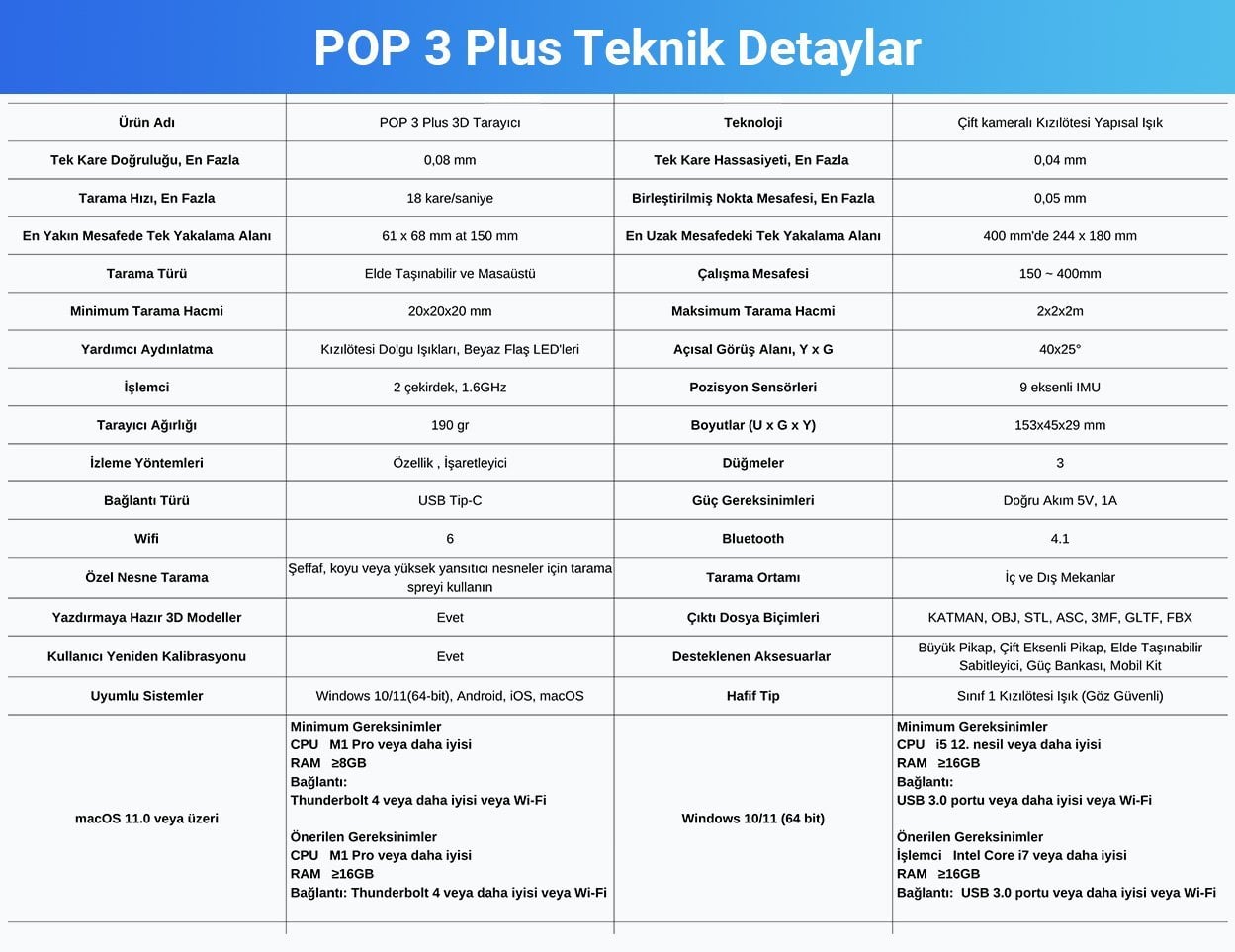 Revopoint POP 3 Plus Standart Package 3D Tarayıcı